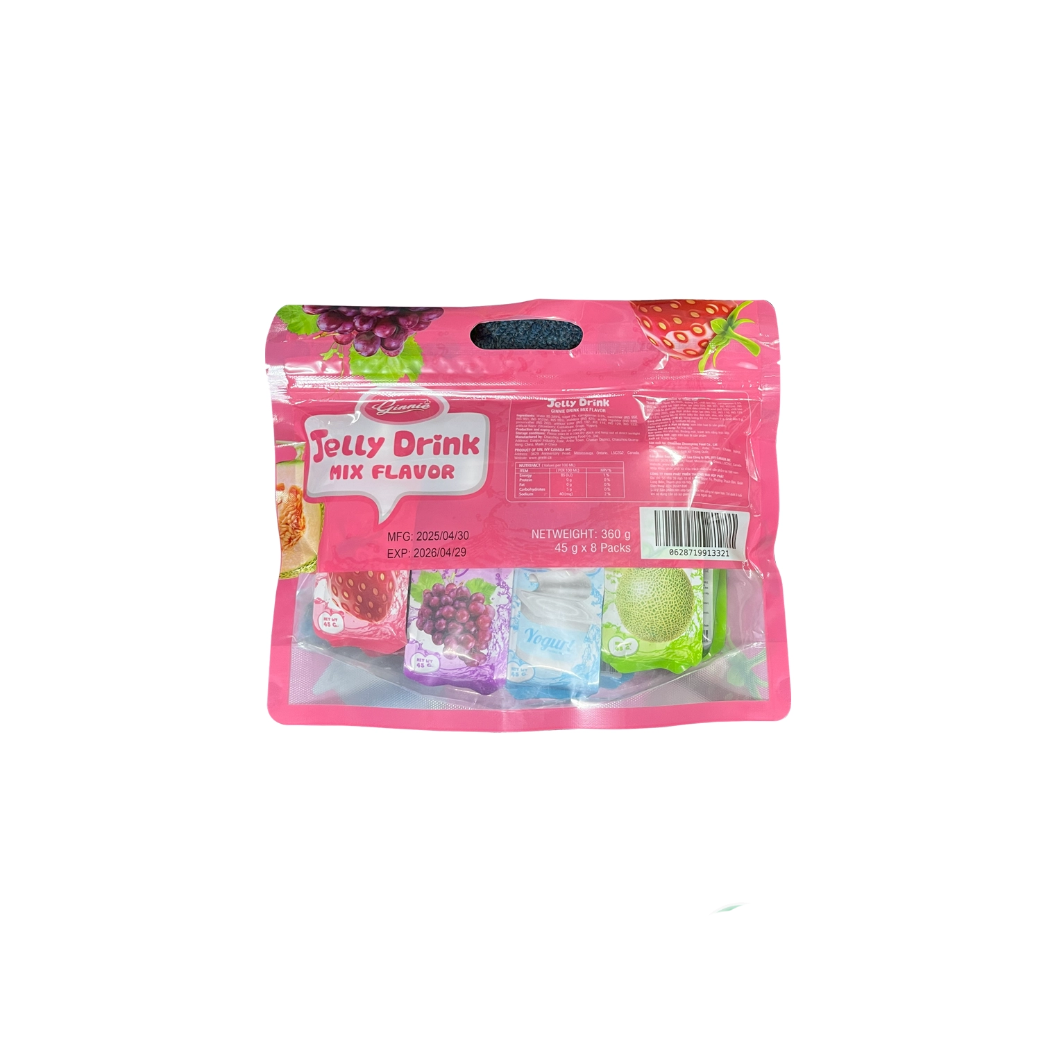 Thạch Uống GINNIE Mix 4 Vị Túi 360g