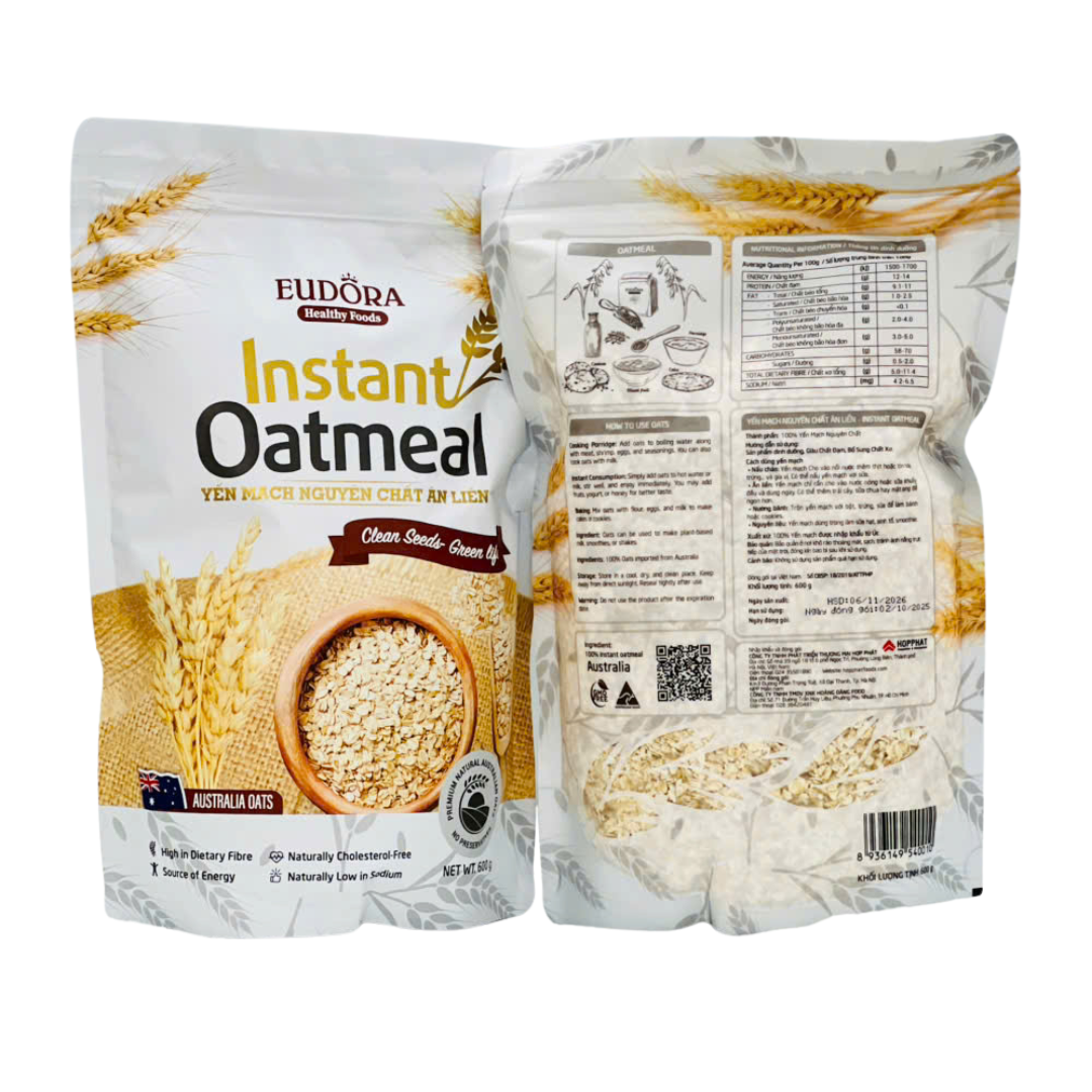 Yến mạch nguyên chất Eudora nhập khẩu chính hãng từ Úc. Sản phẩm không chứa chất bảo quản, không hương liệu, không phụ gia, giữ trọn vẹn độ tinh khiết và giá trị dinh dưỡng tự nhiên.