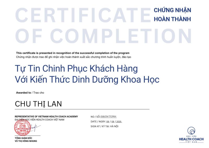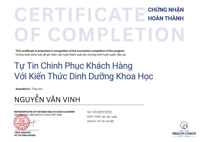 Ứng dụng kiến thức dinh dưỡng vào việc tư vấn sản phẩm, đặc biệt là dòng sữa hạt Nutriseeds. Học viên biết cách thuyết phục khách hàng bằng luận điểm khoa học, biến sản phẩm thành giải pháp sức khỏe tối ưu.